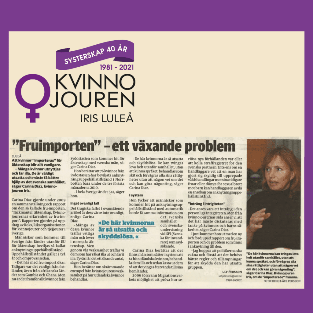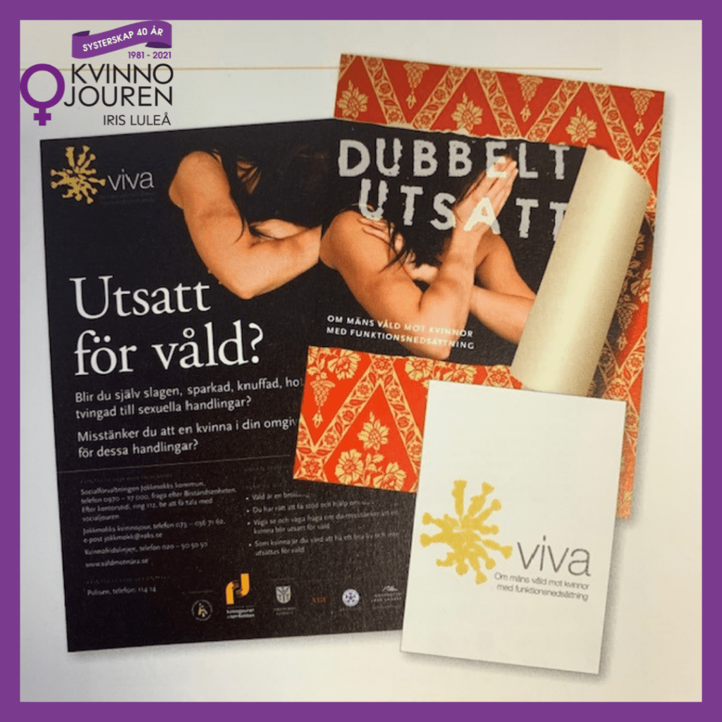Projektet Viva 2009-2010. Kvinnojouren Iris genomför projektet Viva i samarbete med Handikapporganisationernas samarbetsorganisation, HSO, Kommunala handikapprådet i Luleå och ABF Norr Luleå. Projektet syftar till att lyfta upp och uppmärksamma mäns våld mot kvinnor med funktionsnedsättning samt öka kunskapen om våldet hos myndigheter och personal som arbetar och kommer i kontakt med kvinnor med funktionsnedsättning. […]